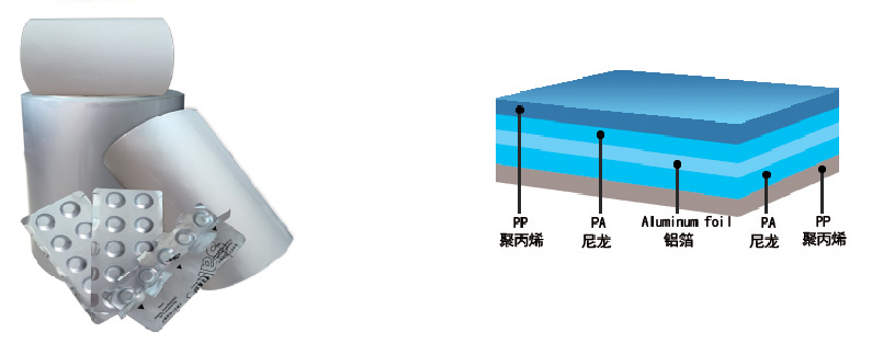 Aluminium and plastic are not separated and broken after alu-plastic laminated film formed,The symmetric structure makes sure that the products do not curl with certain stiffness;